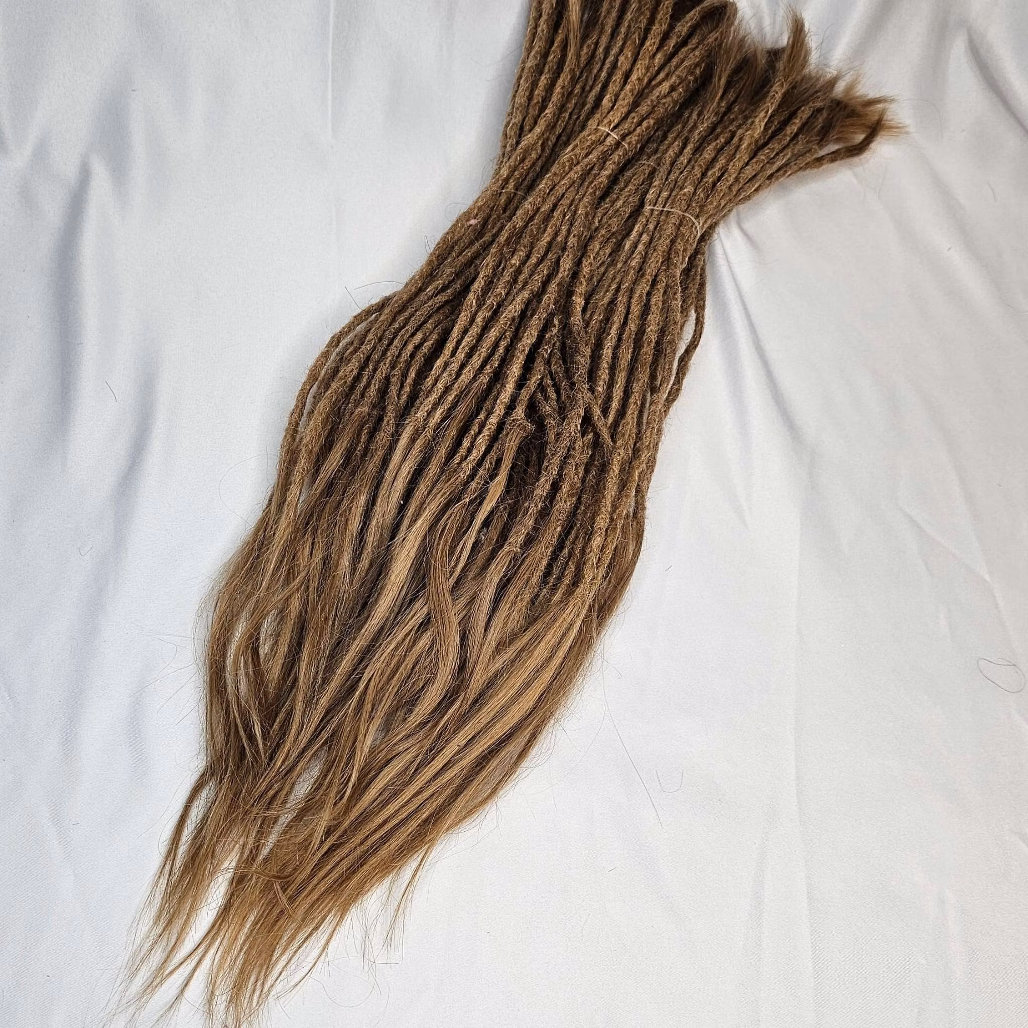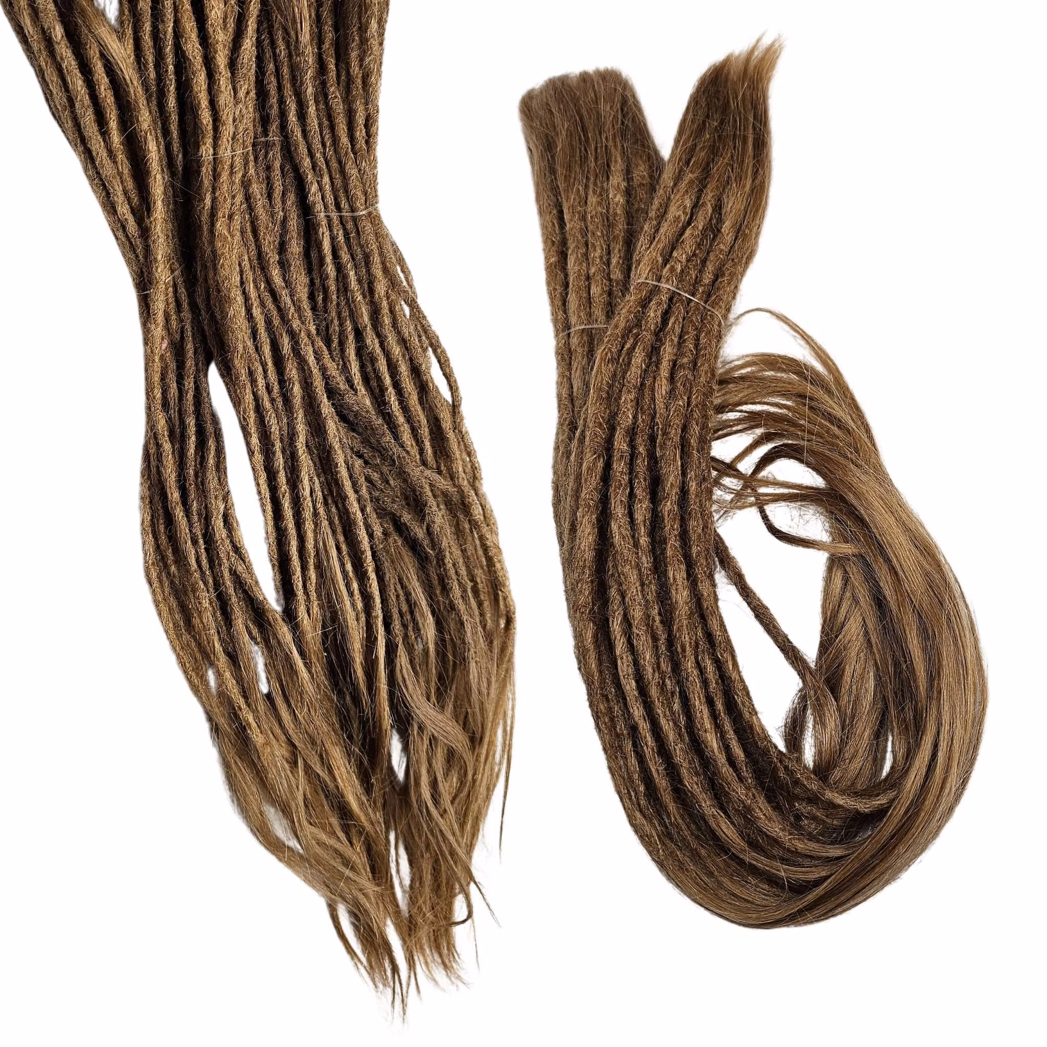 - Perfekt längd och tjocklek: Med en längd på upp till 60 cm och en tjocklek ca 6-7mm i diameter (normal penn-storlek på dreadlocks) ger dessa dreads en fin och naturlig volym. Alla dreadlocks slingor kan variera i längd och tjocklek.