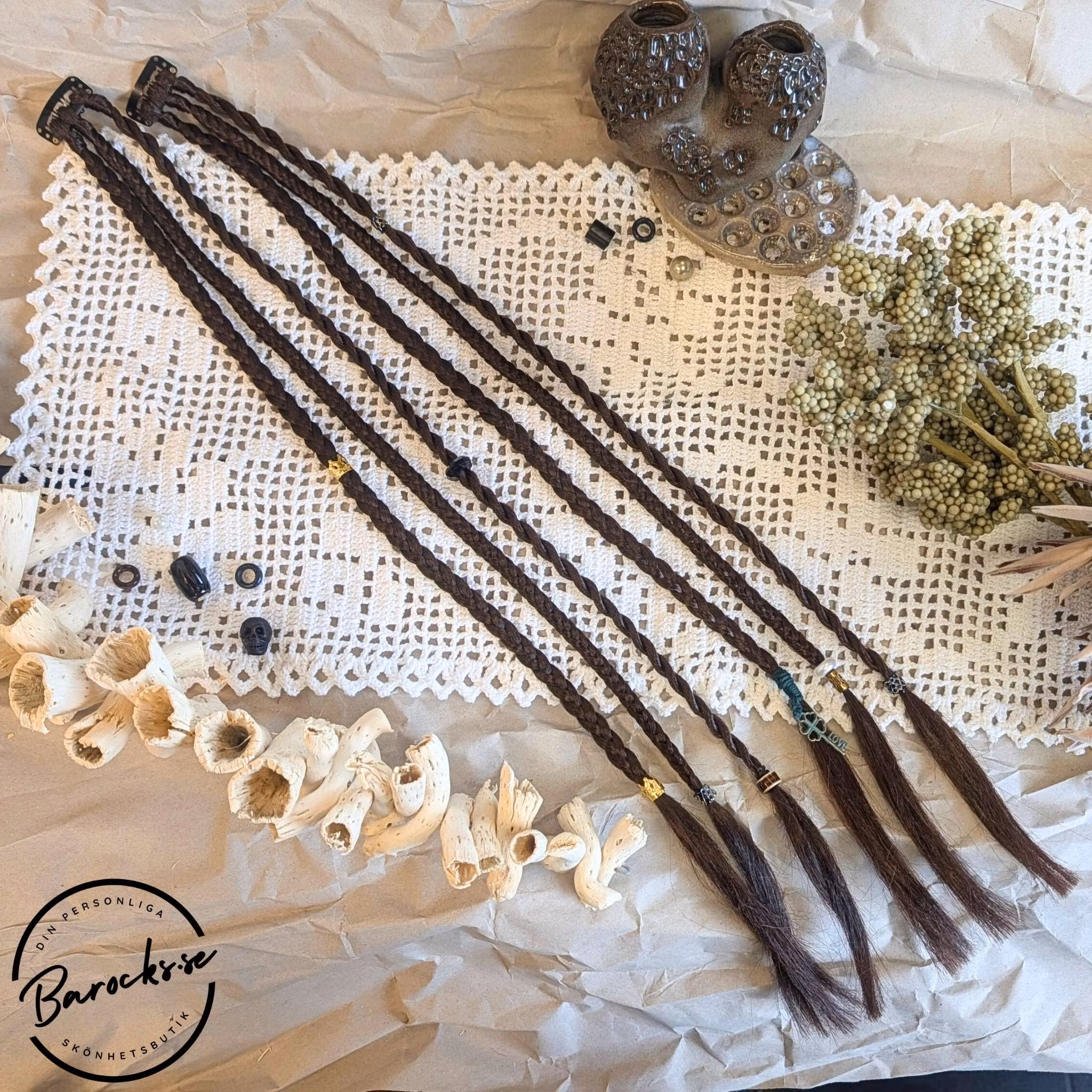 Unika Dekorationer: Varje clip-in är dekorerad med noggrant utvalda detaljer som lyfter din look och ger ett personligt uttryck.